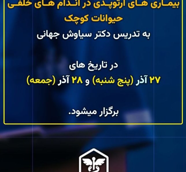 وبینار بیماری های ارتوپدی در اندام های خلفی حیوانات کوچک برگزارکننده: گروه دامپزشکی ایران الان رزرو کنید