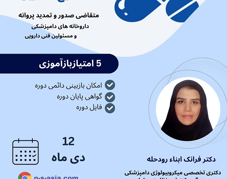 دوره آموزشی مجازی راهبرد های پس از فروش داروها و مواد بیولوژیک برگزارکننده: دپارتمان علمی پایش سلامت آسیا با همکاری سازمان نظام دامپزشکی الان رزرو کنید