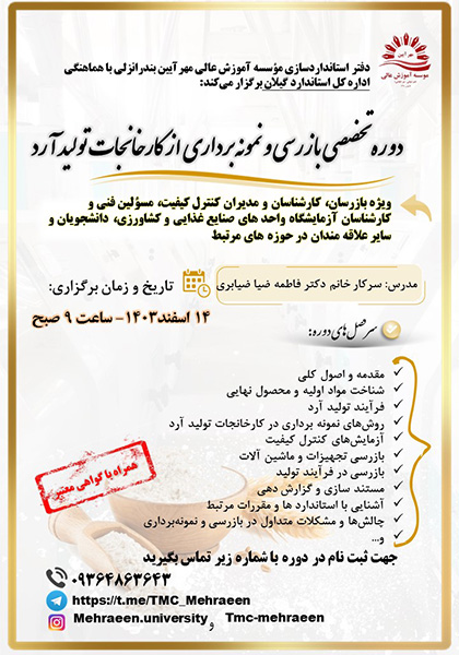 • دوره تخصصی بازرسی و نمونه برداری از کارخانجات تولید آرد