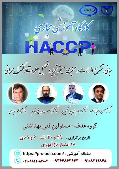 کارگاه آموزشی مجازی مبانی ، تشریح الزامات و ممیزی سیستم تجزیه تحلیل خطر و نقاط کنترل بحرانی (HACCP)